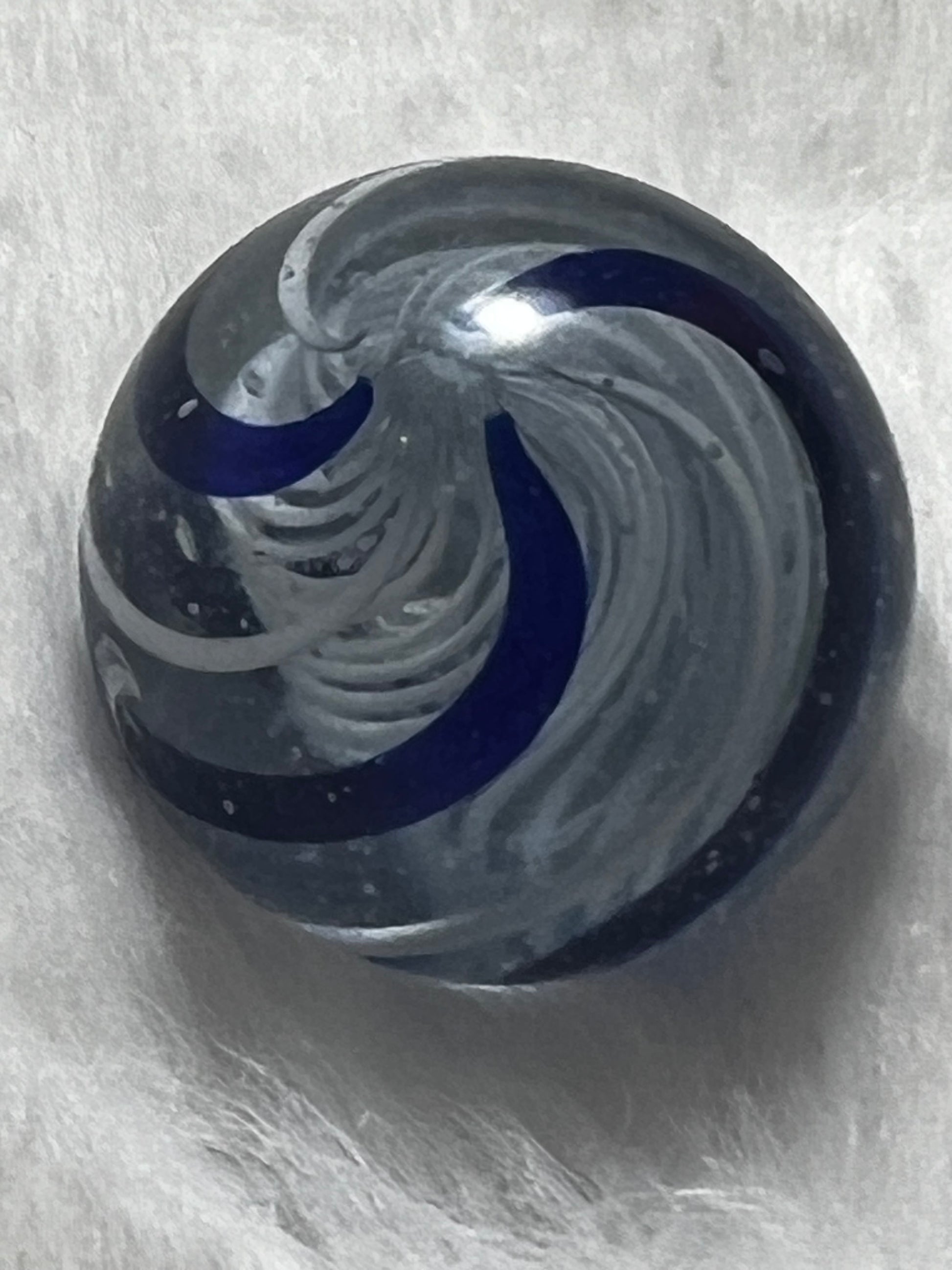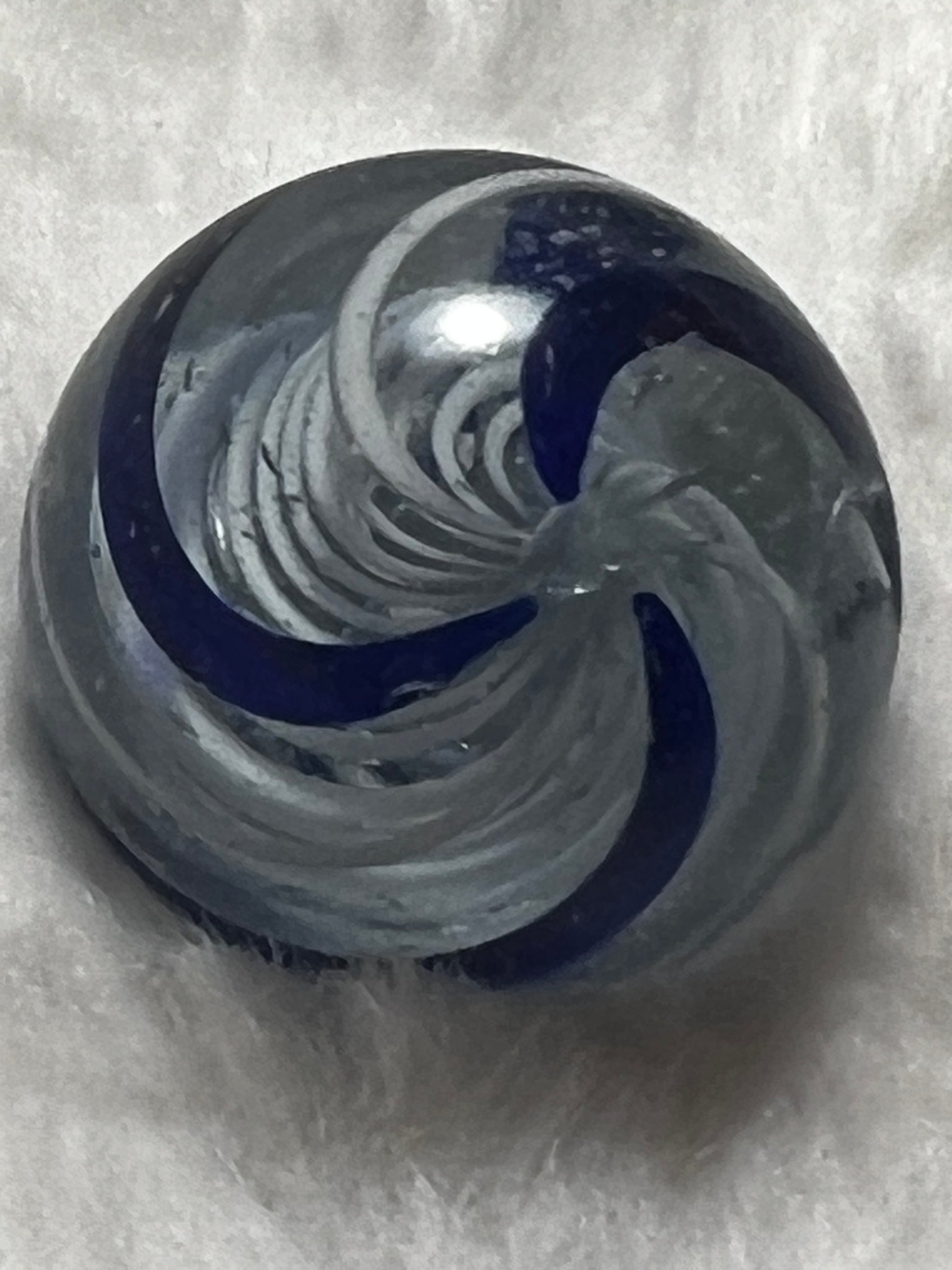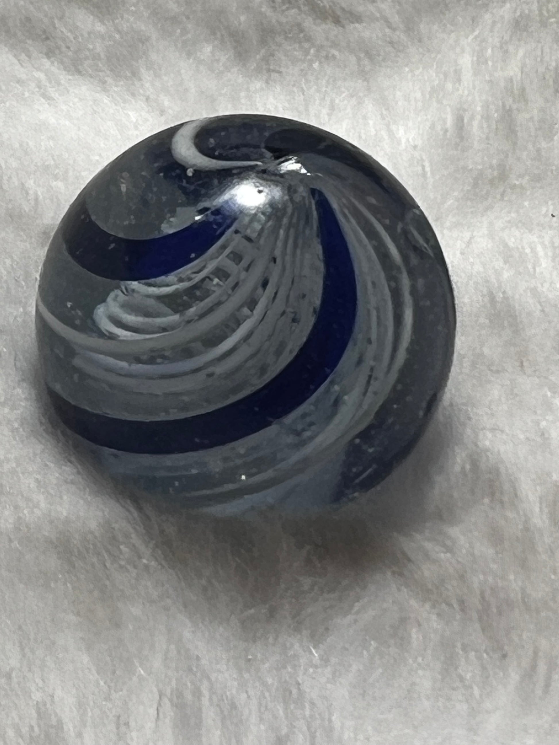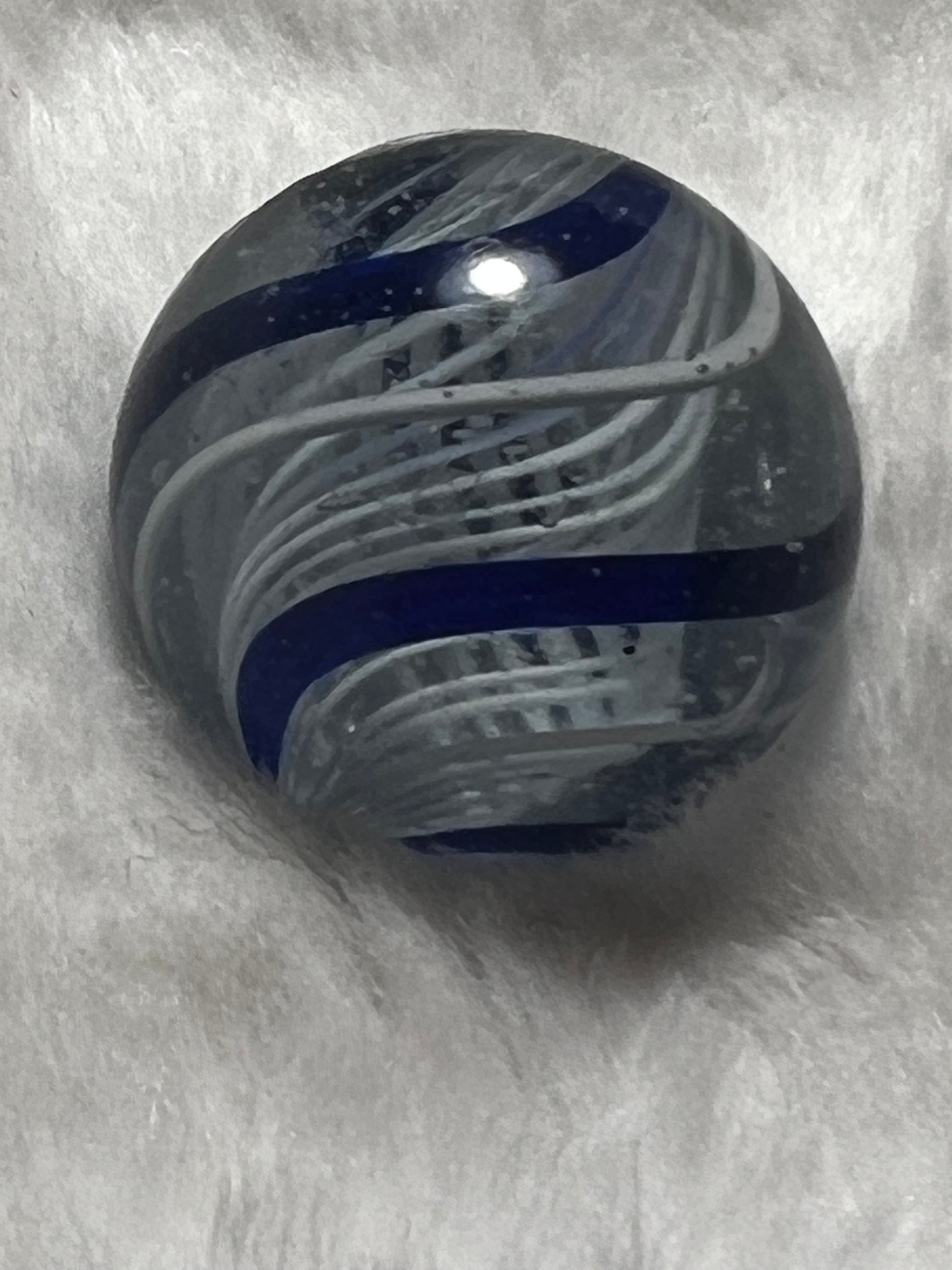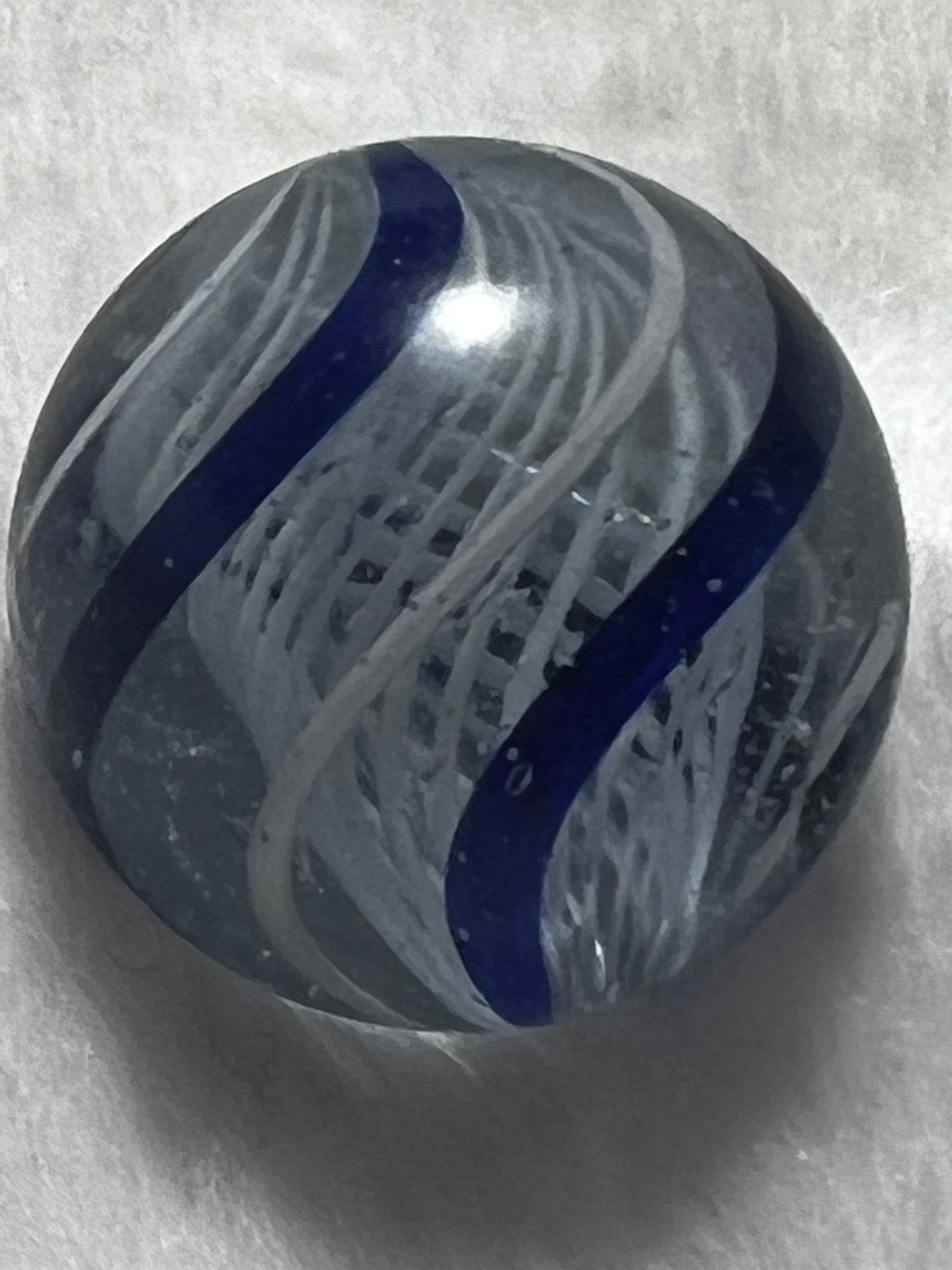 Vintage German White Latticino Core Marble. With Blue and White Swirl. .9 diameter.